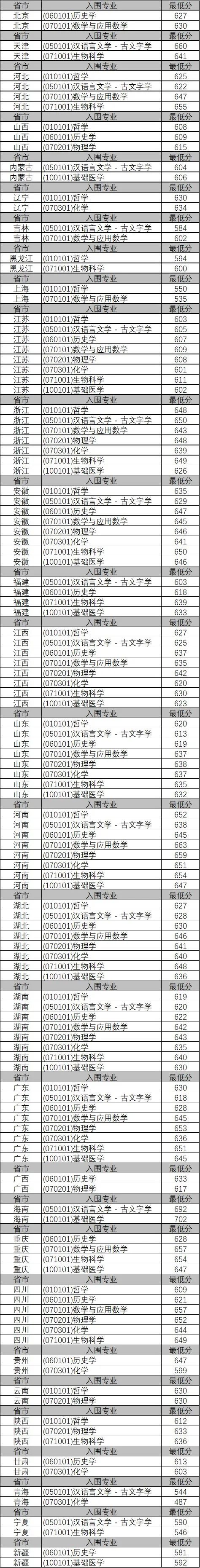 武汉大学2021年强基计划入围分数线