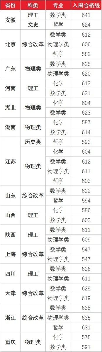 东南大学2021年强基计划入围分数线