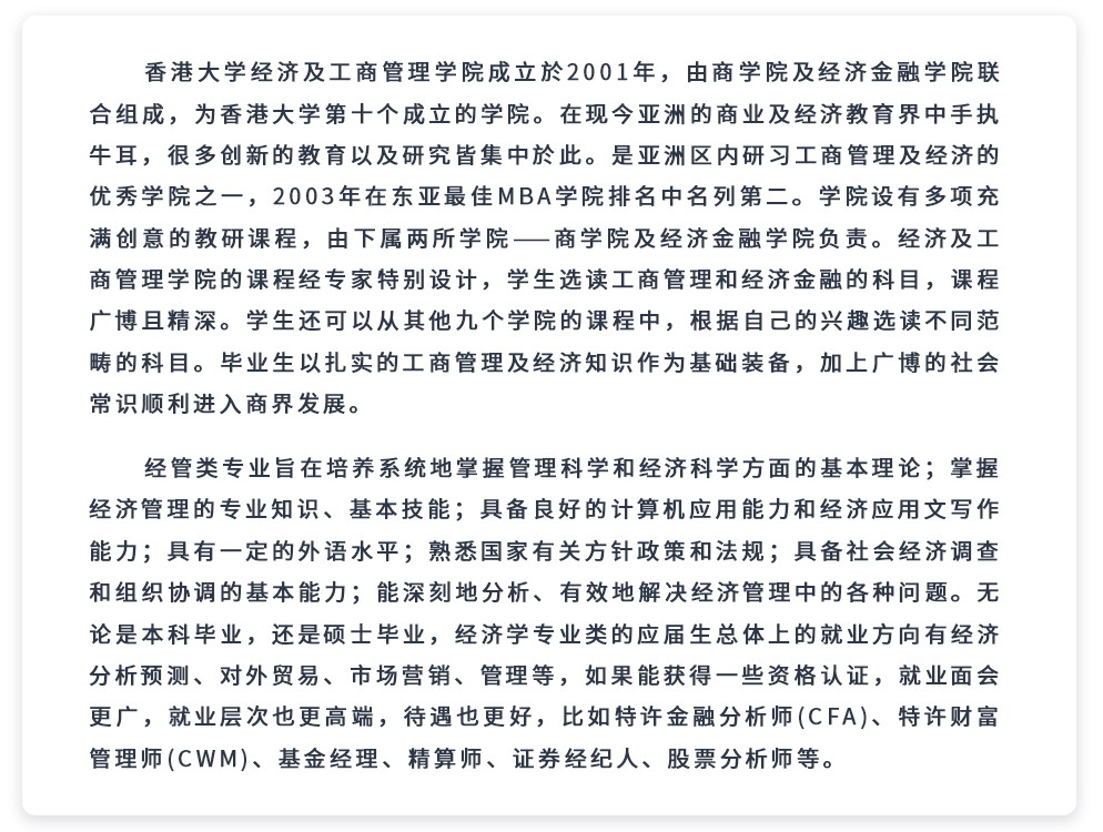 关联专业:经济学、工商管理                      适合人群:高中生